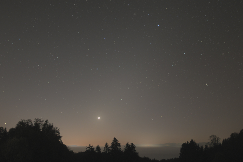 October 26, 2019, 4:16 UT, Carl Zeiss F-Distagon 2.8/16mm @ f/2.8, 16x15 seconds, ISO 3200, Canon EOS 77D, south of Munich, Germany