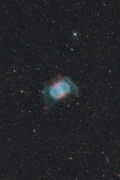 The Dumbbell Nebula M27July 28, 2024, 20:39 UT, Lichtenknecker Flatfield Camera 3.5/500 mm, 90x120 seconds with Antlia ALP-T and 4x60 seconds for the stars without filter, ZWO ASI 2600 MC Duo, Losmandy G11T, Munich, Southern Bavaria, Germany |