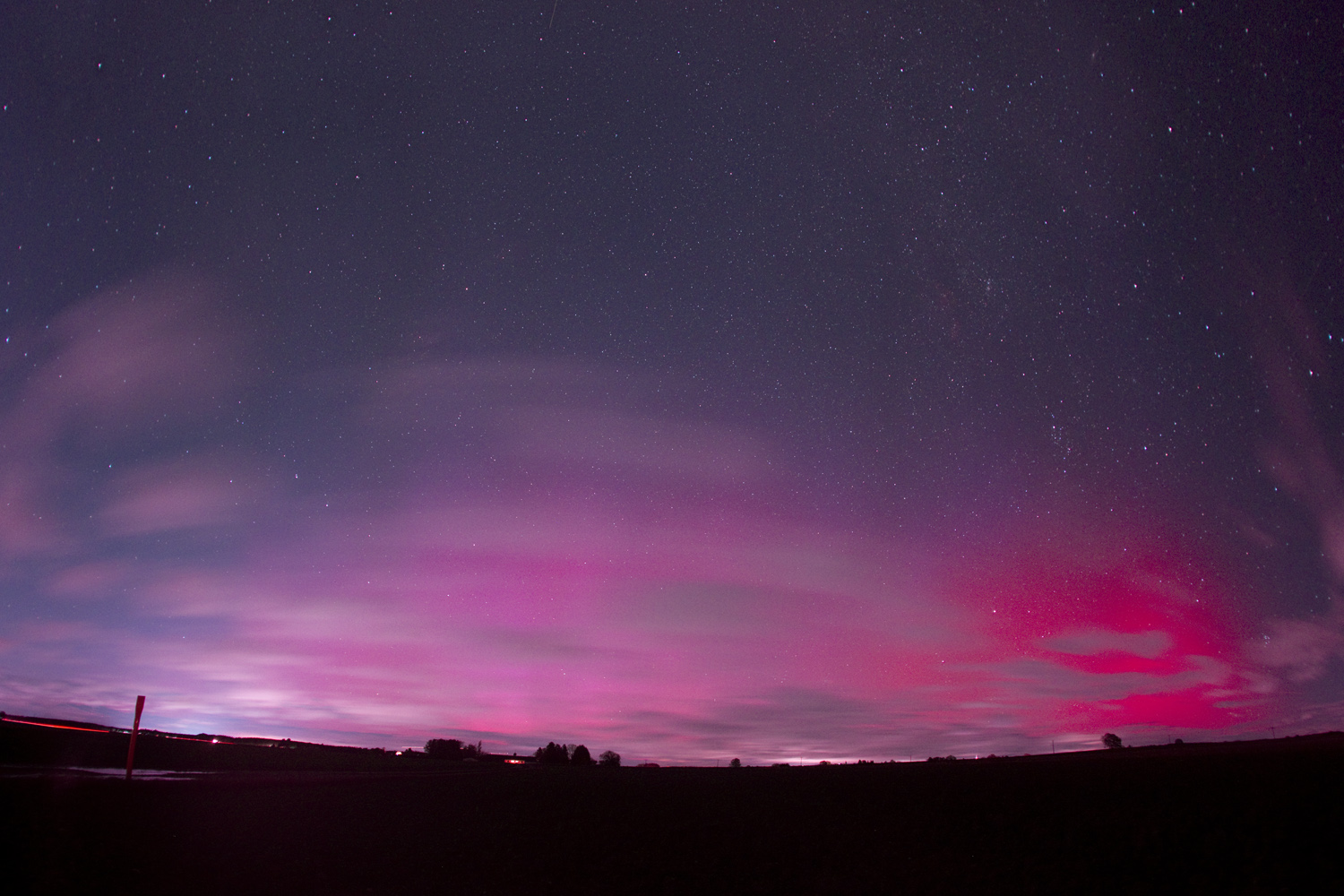 A bright aurora could be observed in the early evening of November 5, 2023. The show was short (maybe 20 minutes) but very intense. The observing site was east of Munich, Bavaria.